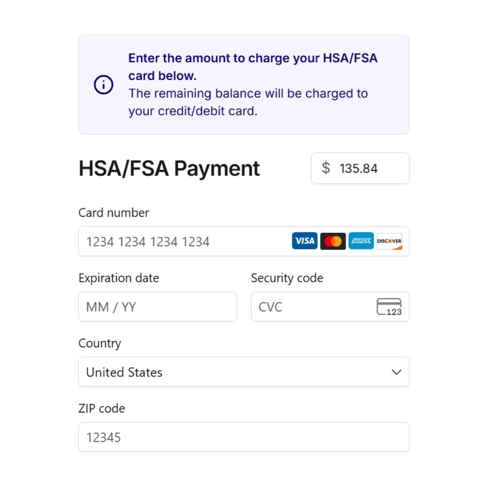 If your cart contains Checkout+, you will be prompted to enter your HSA or FSA debit card information, along with your credit or debit card, on the same screen to pay for Checkout+.